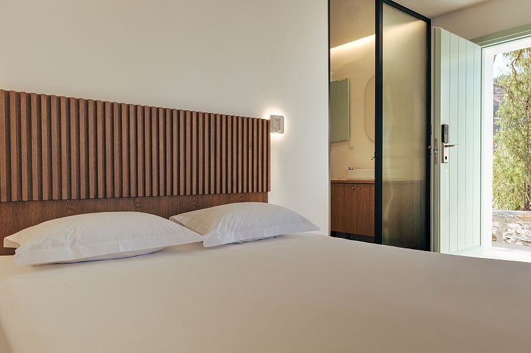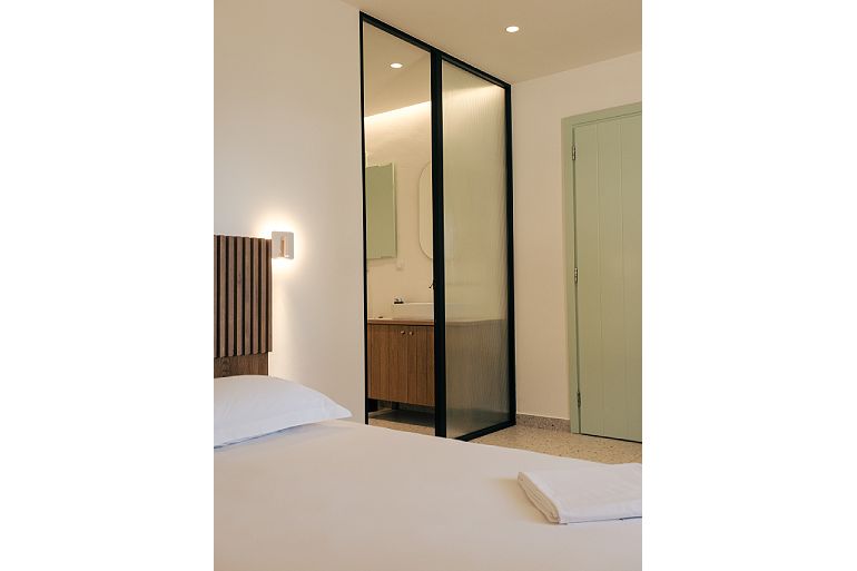 All our rooms have access to the atmospheric shared area with the infinity pool, as well as private sun loungers, poufs, umbrellas, and tables.